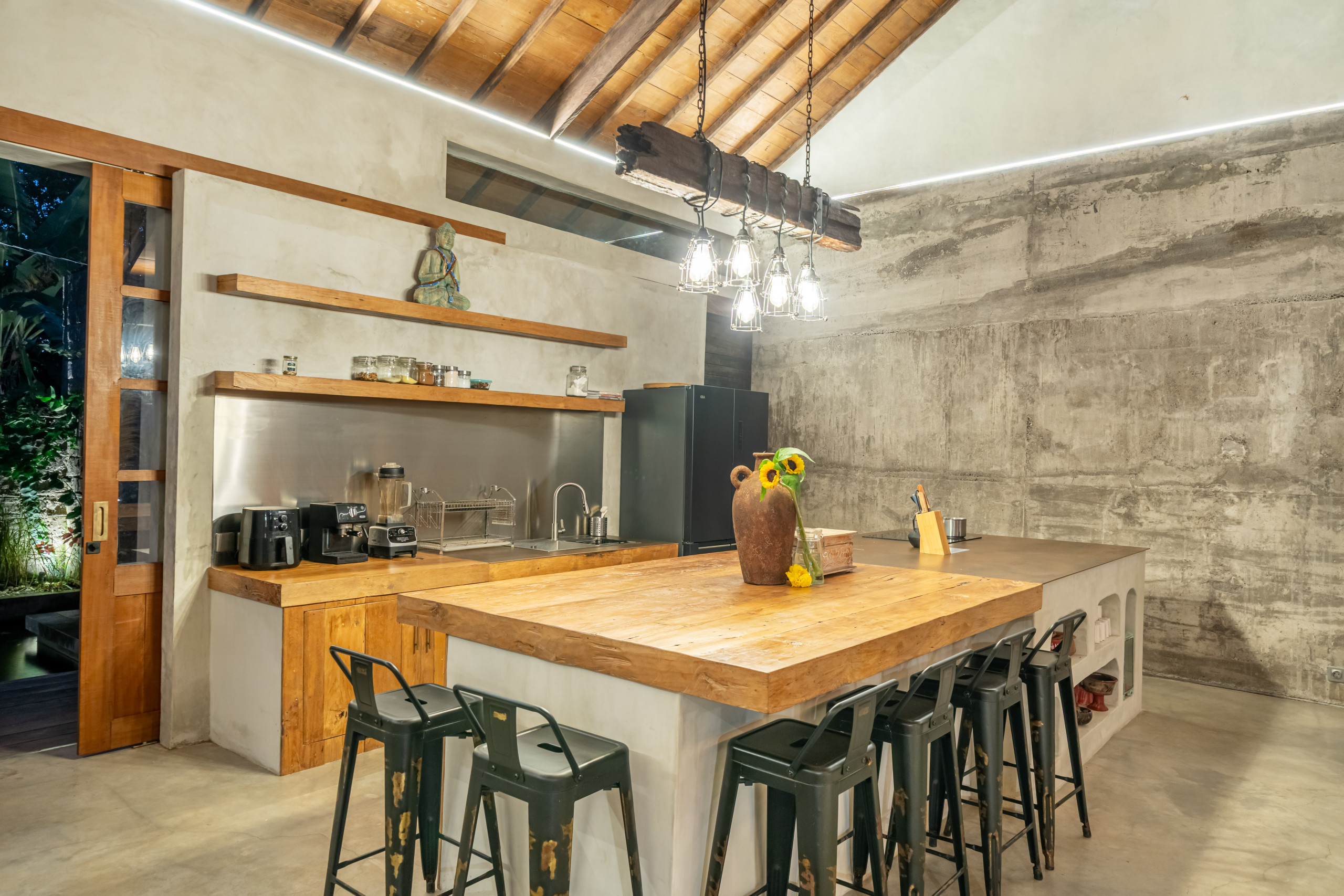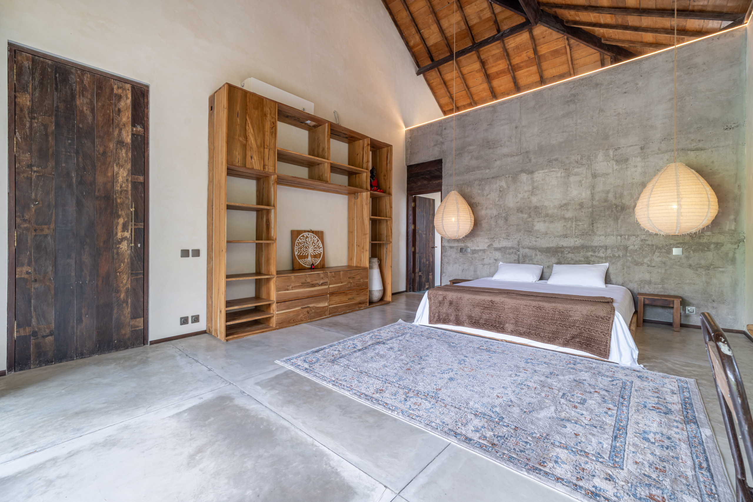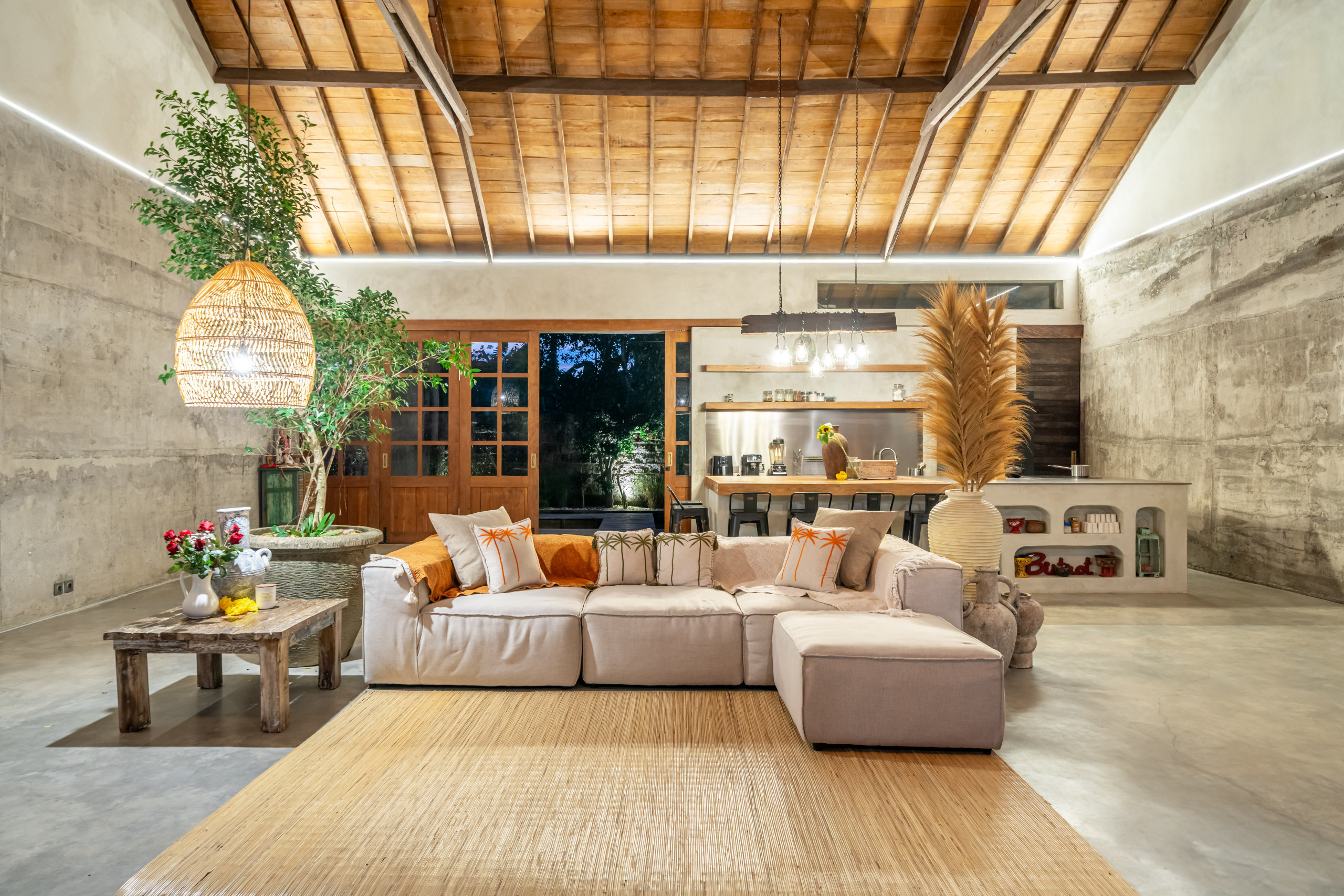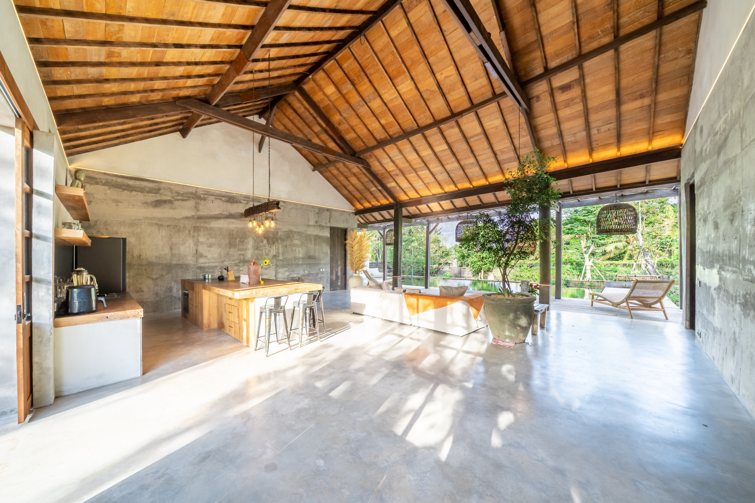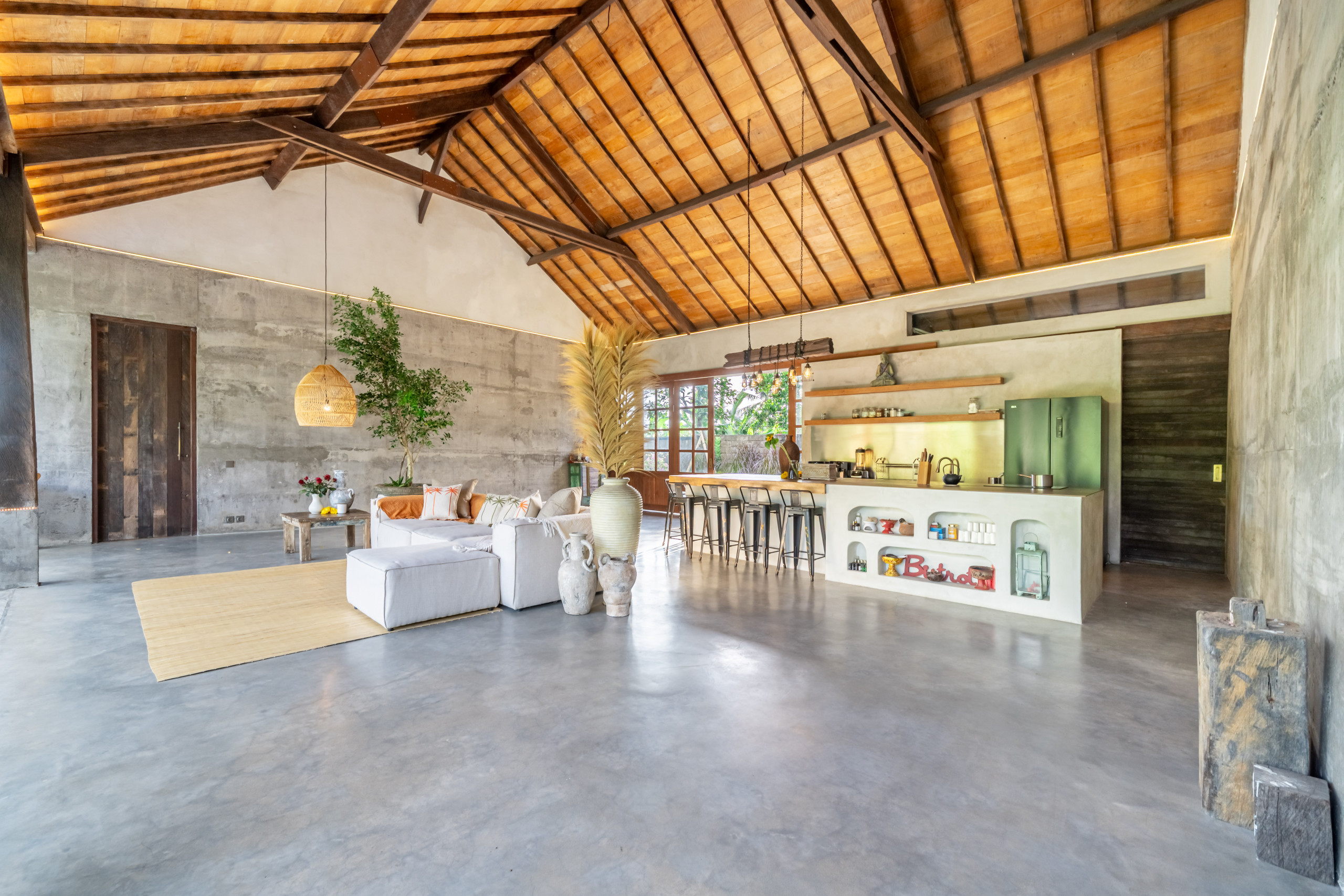 Villa Gaia is tucked away in the peaceful greenery of Buwit, this huge tropical-minimalist villa sits on an expansive 23 are of land, offering you space, serenity, and style. Built with soaring ceilings, sleek concrete walls, and warm ironwood accents, the design feels both grand and grounded. Every corner reflects a seamless balance of raw textures and natural light, giving the villa a unique blend of modern simplicity and tropical charm.