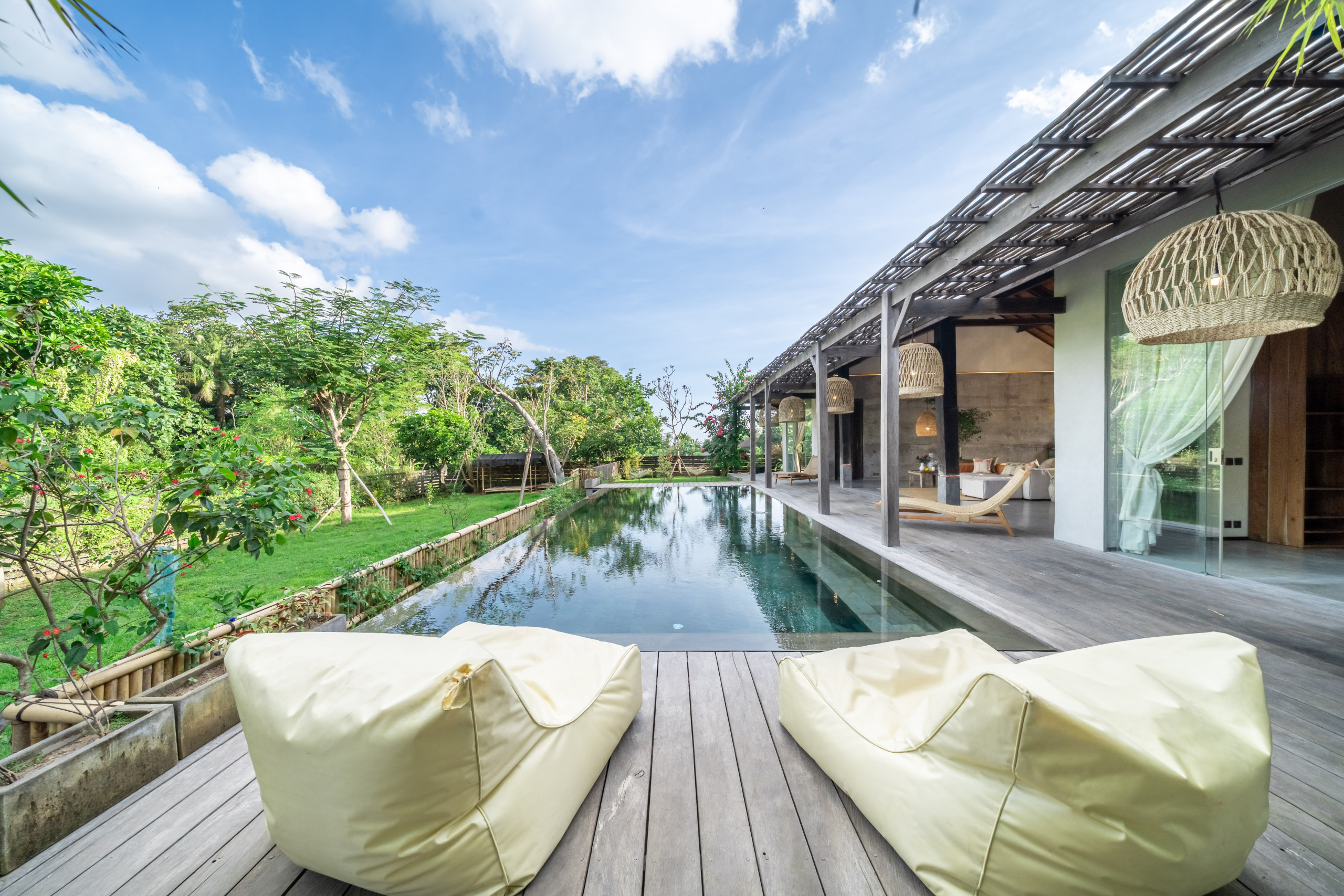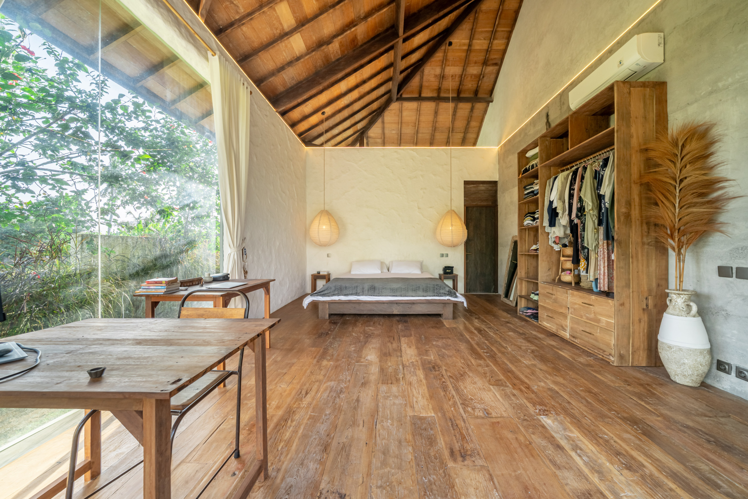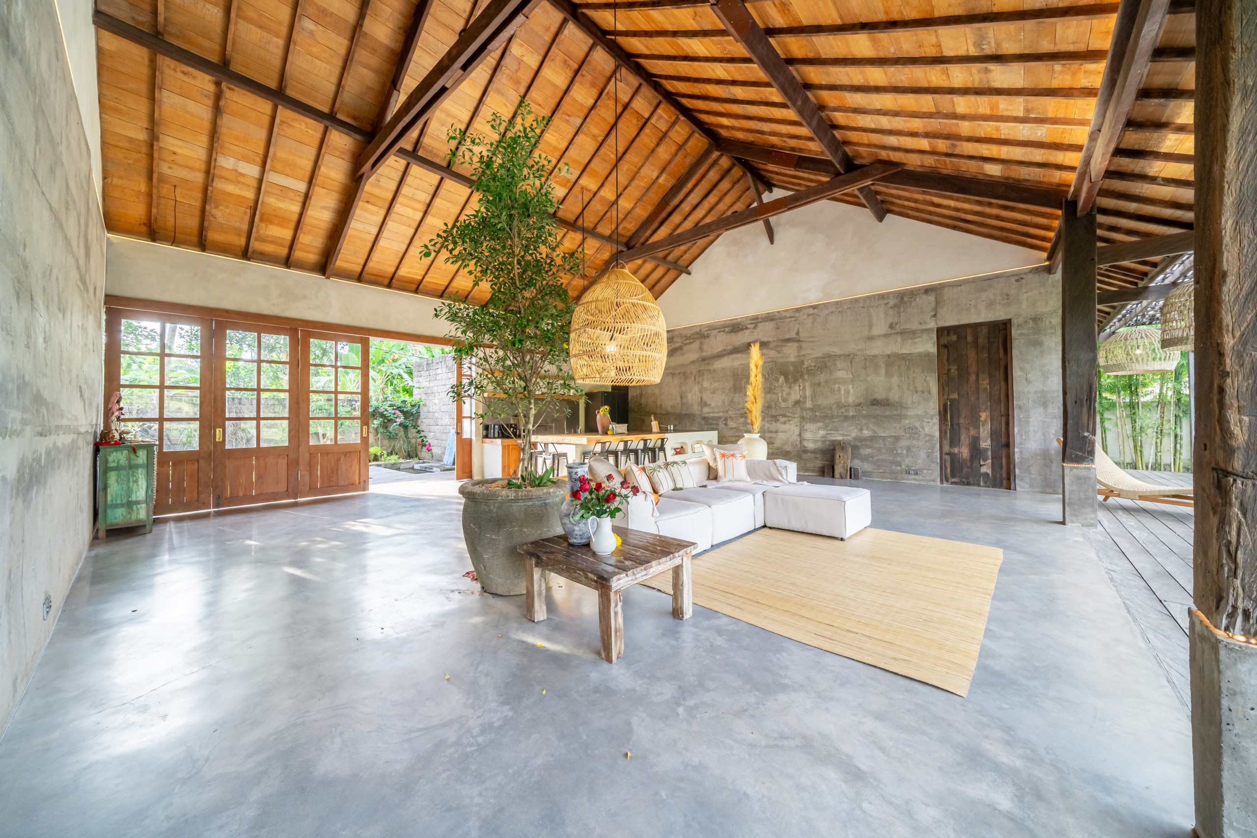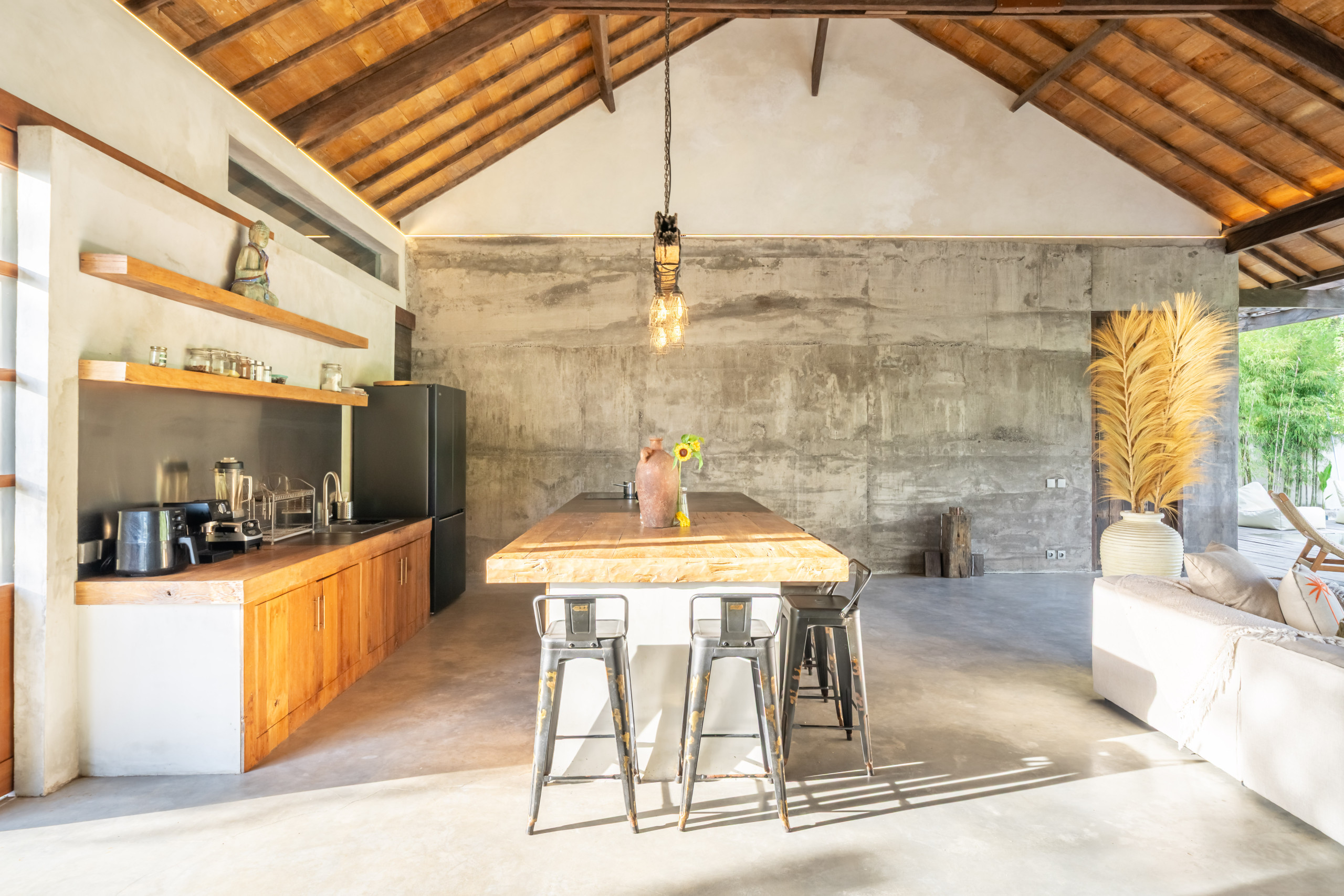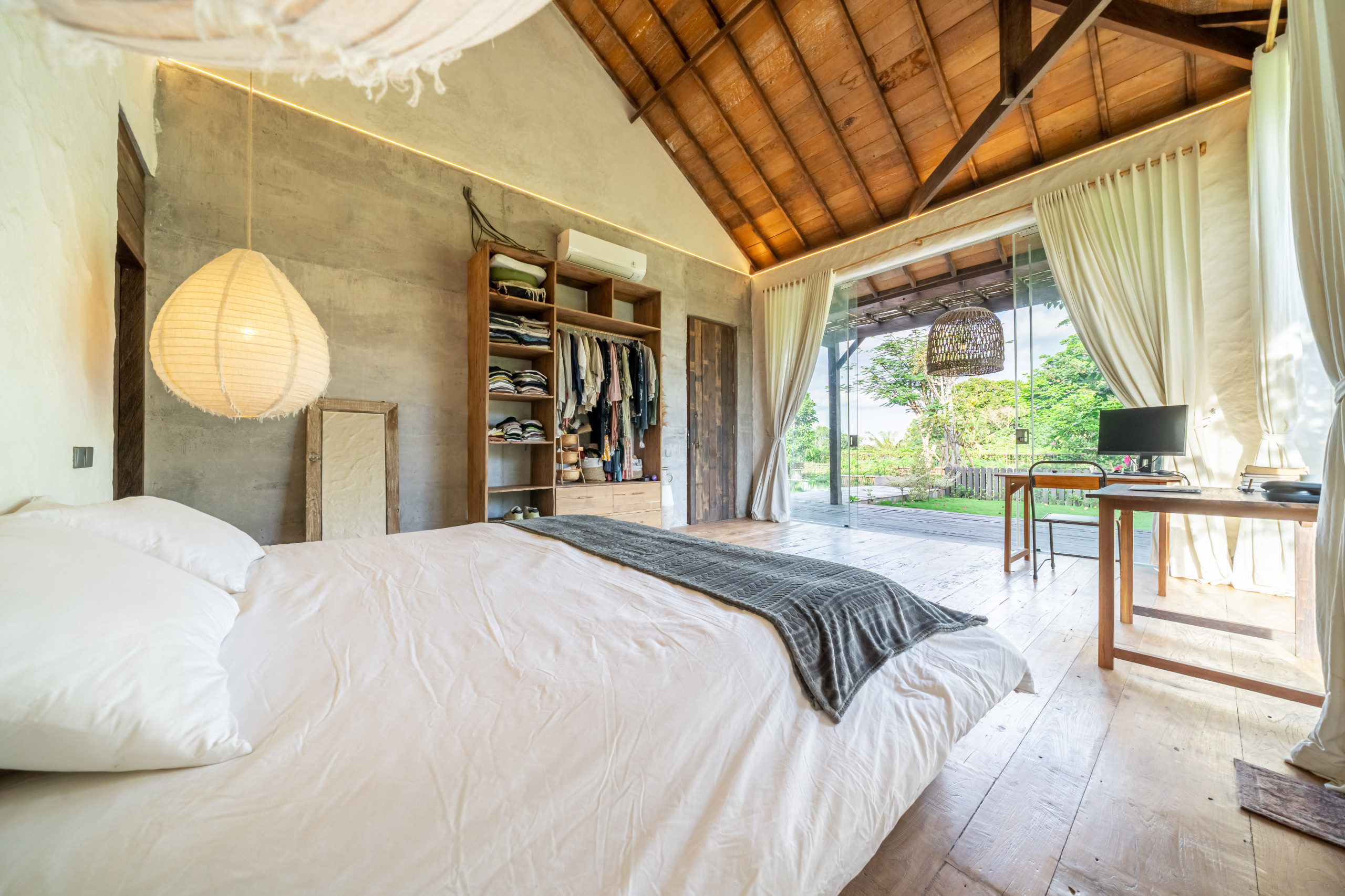 Villa Gaia is tucked away in the peaceful greenery of Buwit, this huge tropical-minimalist villa sits on an expansive 23 are of land, offering you space, serenity, and style. Built with soaring ceilings, sleek concrete walls, and warm ironwood accents, the design feels both grand and grounded. Every corner reflects a seamless balance of raw textures and natural light, giving the villa a unique blend of modern simplicity and tropical charm.