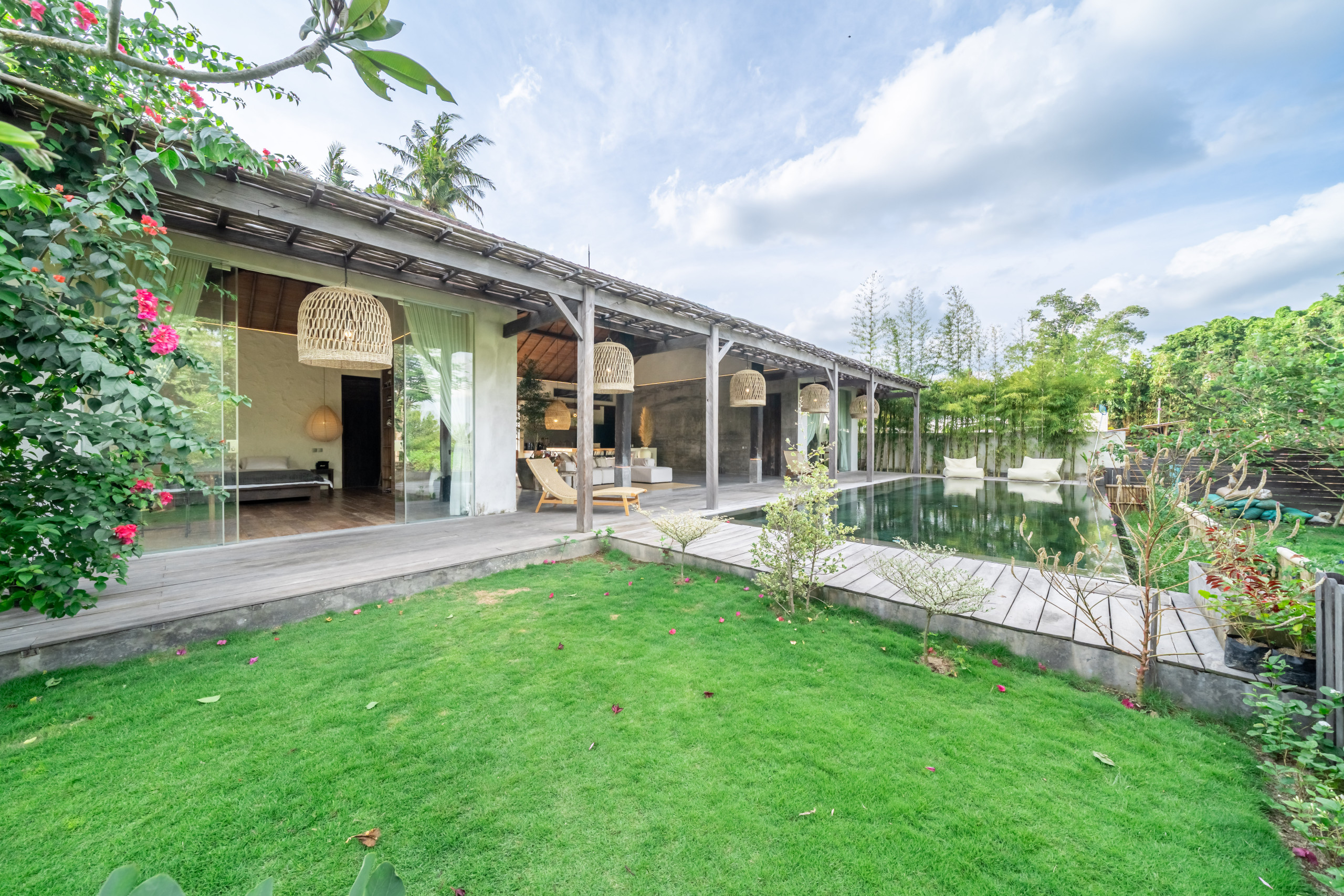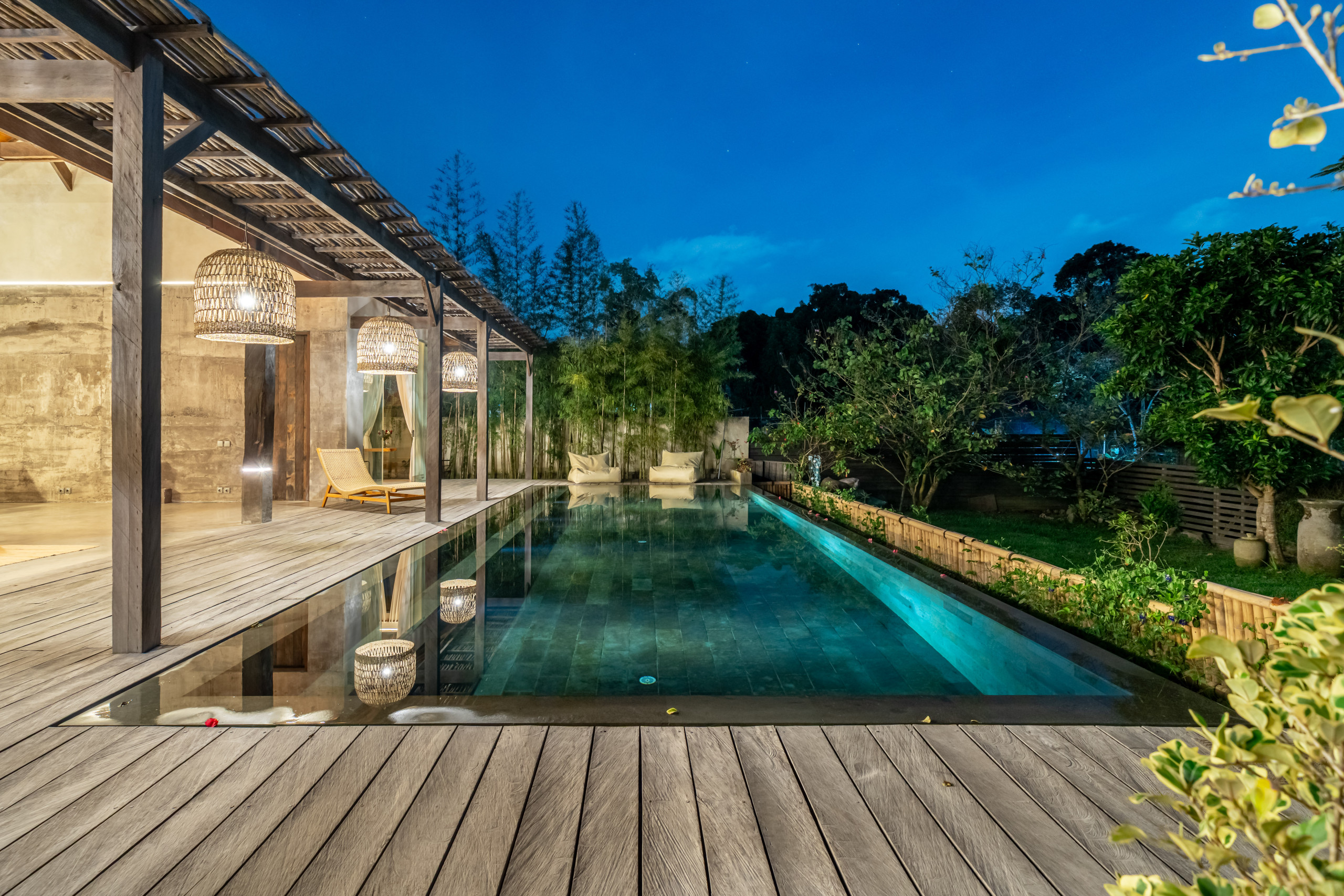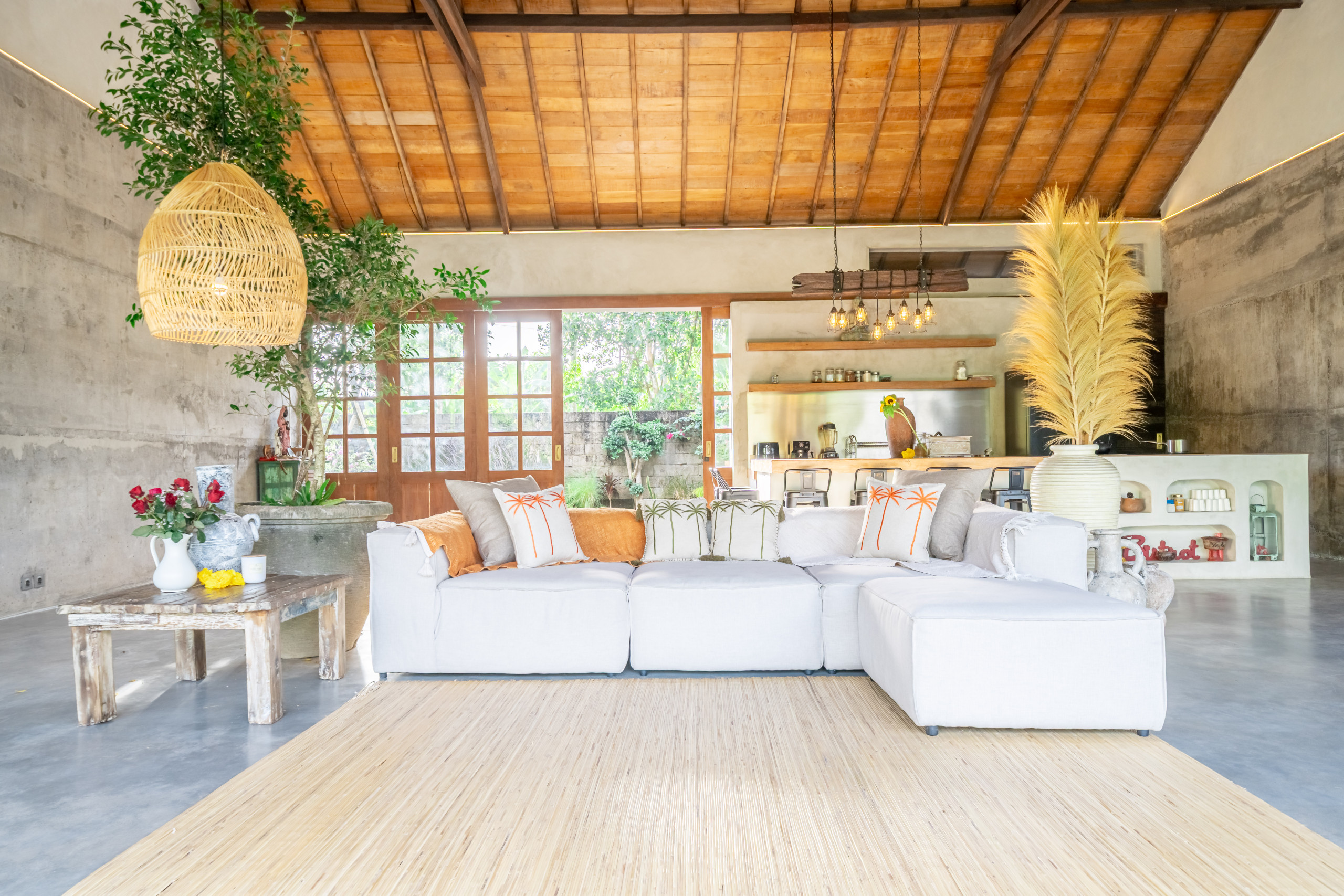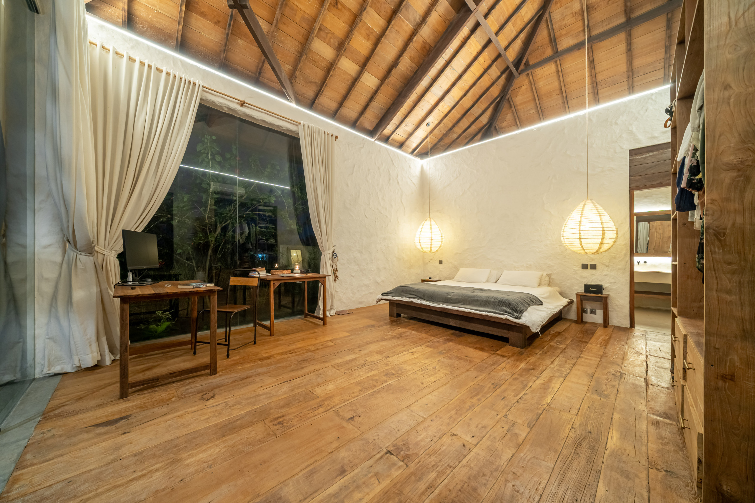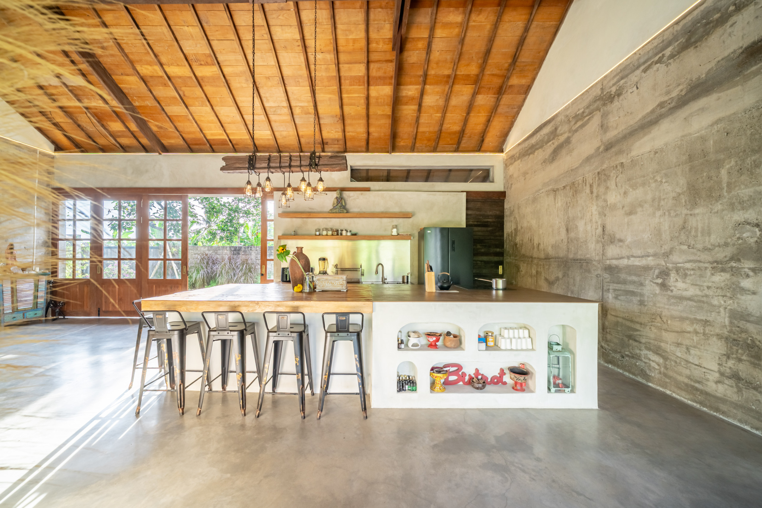 Villa Gaia is tucked away in the peaceful greenery of Buwit, this huge tropical-minimalist villa sits on an expansive 23 are of land, offering you space, serenity, and style. Built with soaring ceilings, sleek concrete walls, and warm ironwood accents, the design feels both grand and grounded. Every corner reflects a seamless balance of raw textures and natural light, giving the villa a unique blend of modern simplicity and tropical charm.